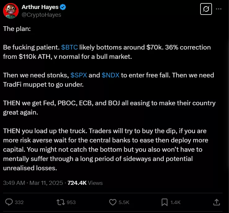 По его словам, «коррекция на 36% от максимума в $110 000 является нормой для бычьего рынка».