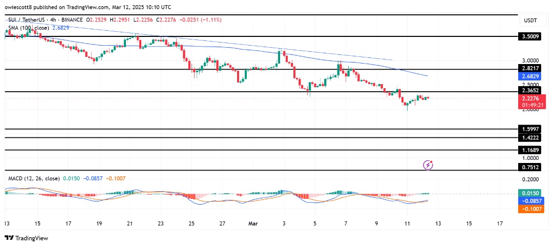 Хотя цена SUI остается ниже 100-дневной SMA, появляются признаки потенциального изменения импульса. MACD находится на грани бычьего пересечения, указывая на то, что давление покупателей может нарастать. Когда пересечение будет подтверждено, это может сигнализировать об усилении восходящего тренда, увеличивая шансы SUI на прорыв ключевых уровней сопротивления.