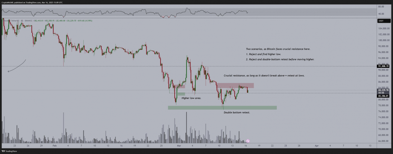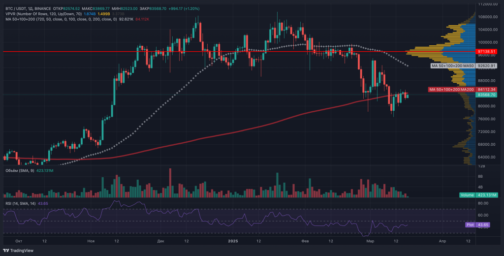 Биткоин входит в неделю заседания Федерального комитета по открытым рынкам (FOMC), которое состоится 19 марта. Криптовалюта сумела избежать продолжительного падения перед закрытием недели, лишь кратковременно опустившись до $82 000, после чего последовал отскок.