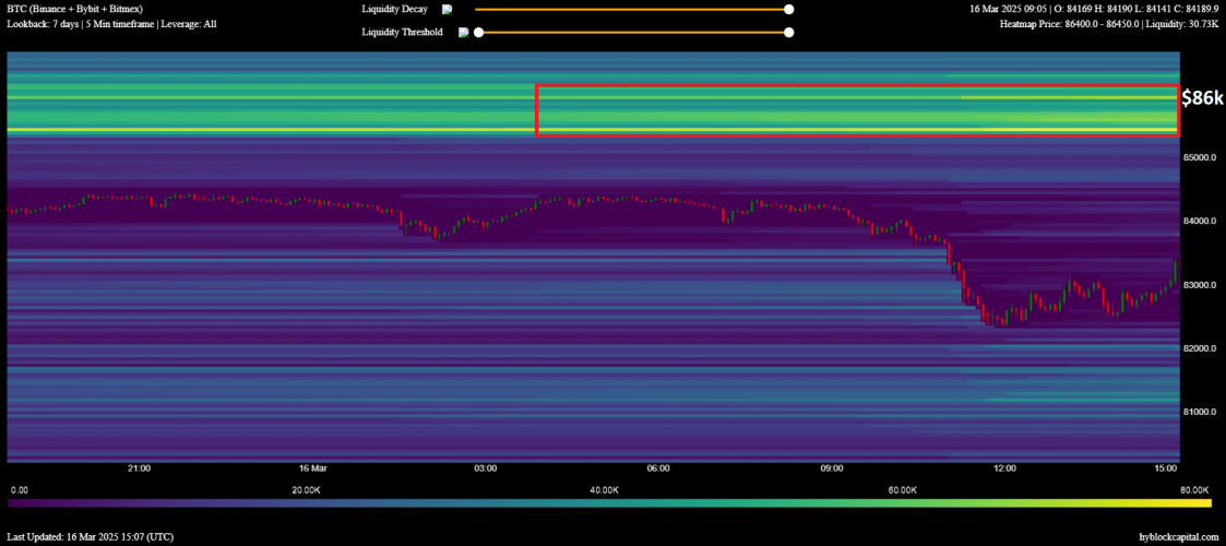 Трейдер CrypNuevo отметил, что ликвидность в основном сосредоточена выше текущих цен, создавая ключевые цели для покупателей. «Область между $85 4000 и $87 1000 является основной зоной ликвидности», — пояснил он в своем анализе на платформе X. «Движение вверх, нацеленное на эту область в предстоящую неделю, кажется весьма вероятным». Таким образом, именно уровень $87 000 рассматривается как ключевая цель для ближайшего роста биткоина из-за концентрации значительной ликвидности в этой зоне».
