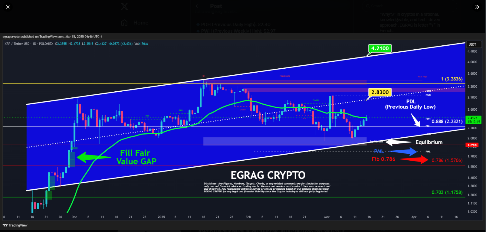 Один из криптоаналитиков, который сохранил уверенность в XRP, — это Egrag Crypto, сделавший смелый прогноз о возможном росте. Он сказал, что XRP работает по циклу, который может привести к значительному росту цен в будущем.