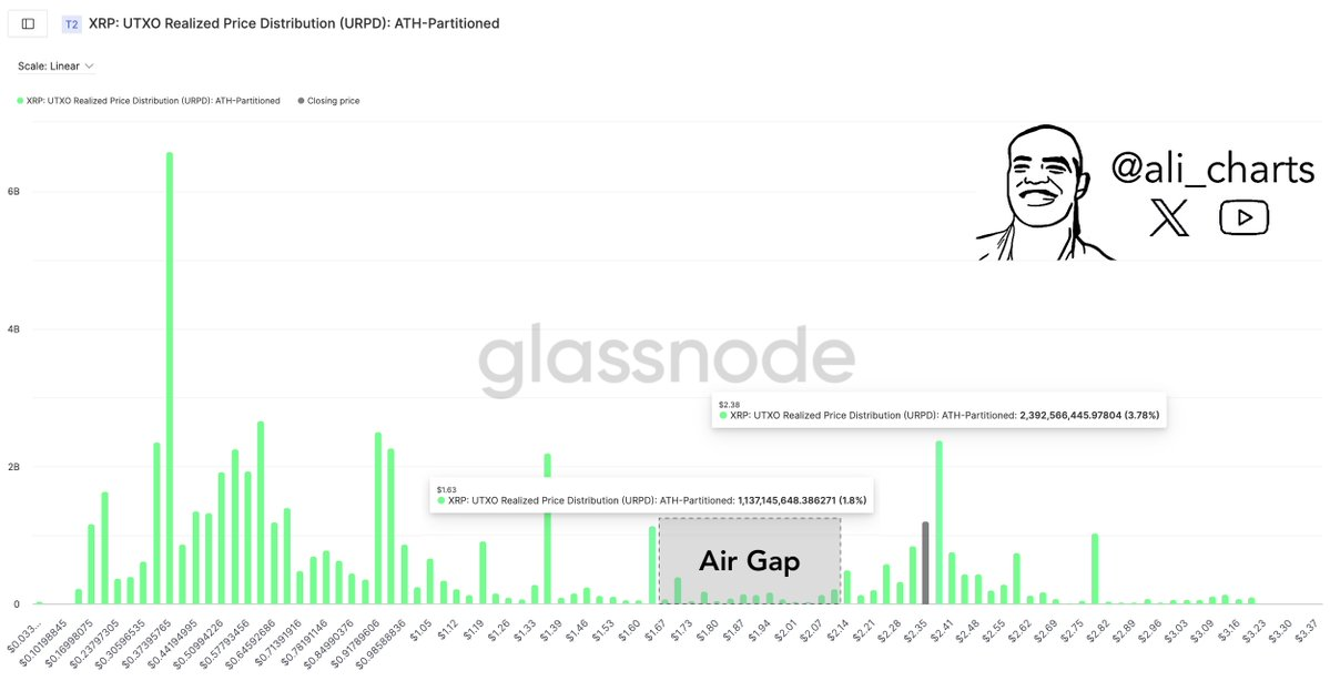 Криптоаналитик Али Мартинес предупредил, что падение цены ниже $2 может спровоцировать значительное снижение, заявив: «Ниже $2 разрыв без существенной поддержки может привести к $1,60».