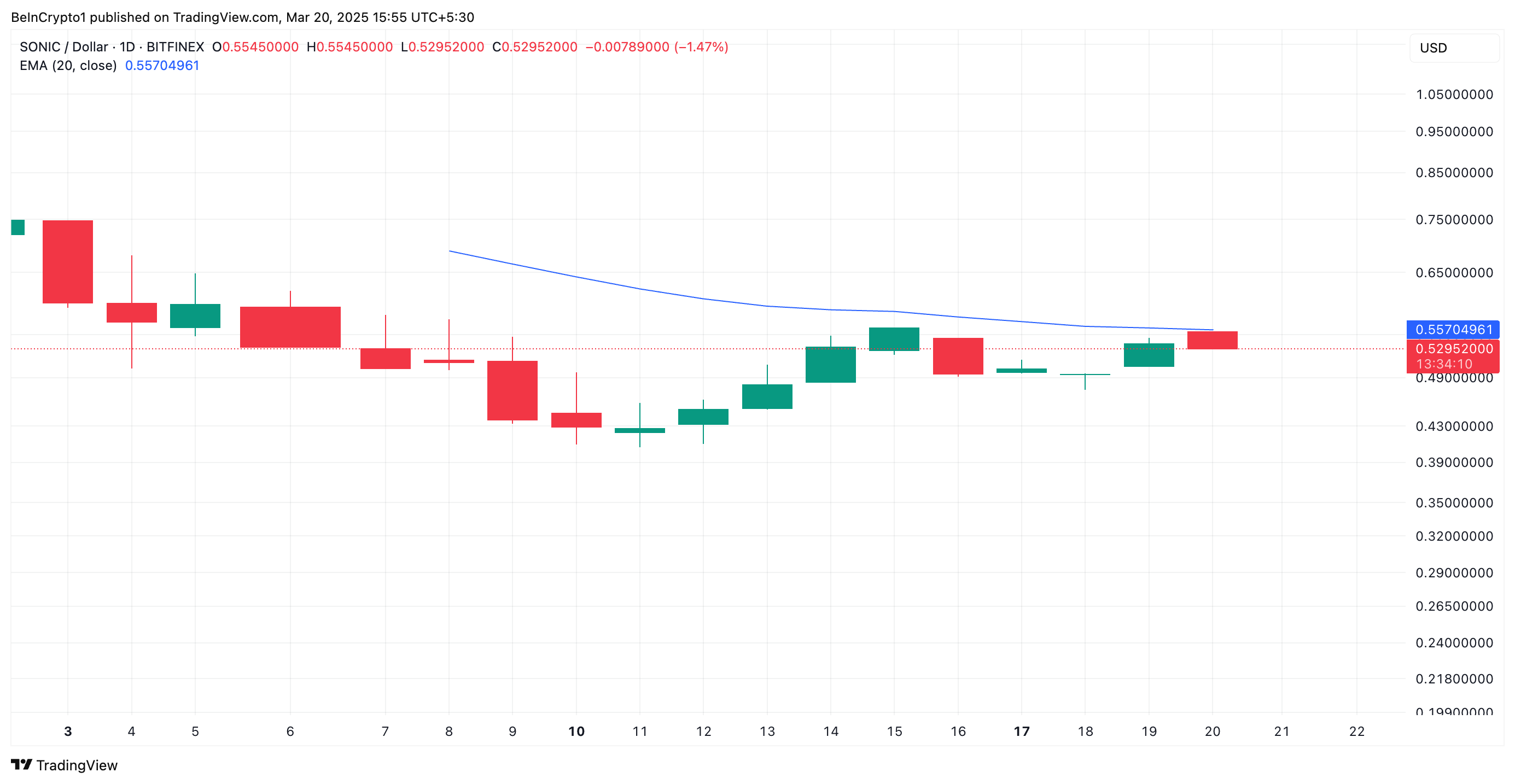 20-дневная EMA для S сейчас выступает как сопротивление на уровне $0,55. В случае прорыва этого барьера восходящий тренд для альткоина усилится еще больше. Кроме того, если указанное сопротивление превратится в новую поддержку, это может подтолкнуть цену S выше $0,57 — вероятно, к $0,63.