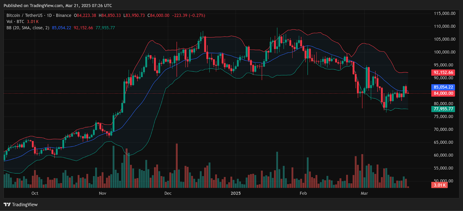 Согласно данным CoinMarketCap, биткоин в настоящее время торгуется ниже 84 000 долларов, что отражает снижение на 2,13% за последние 24 часа. Между тем, эфир (ETH) торгуется около 1 950 долларов, показав снижение на 2,05% за тот же период.