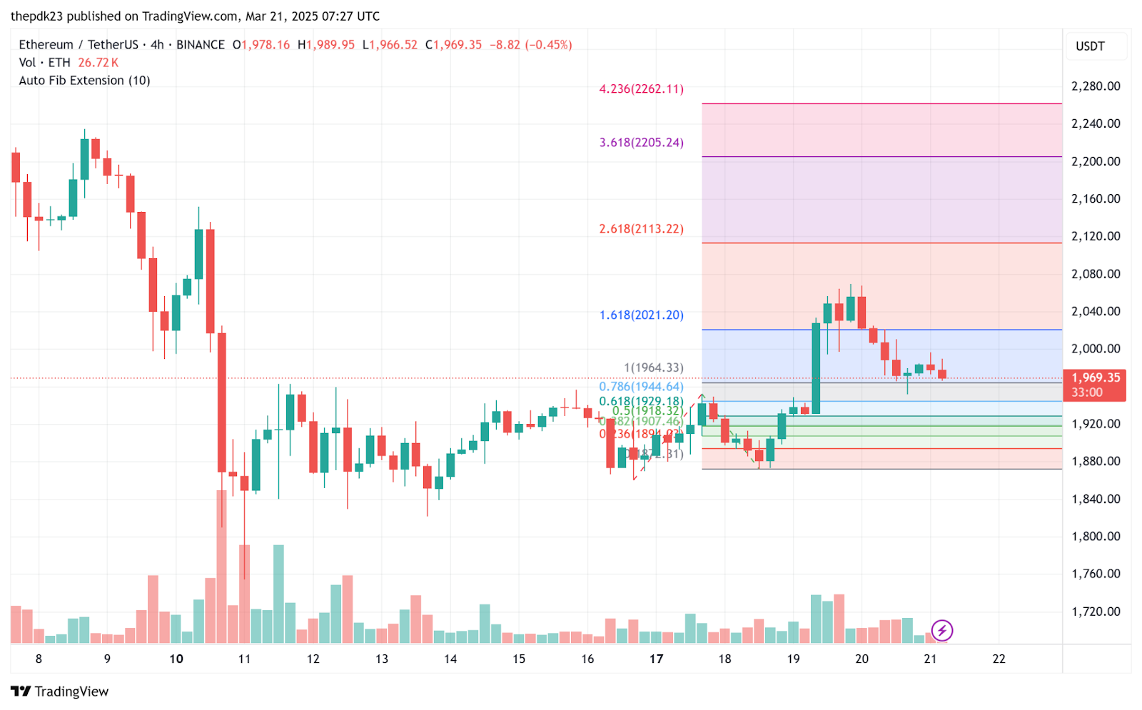 Уровни коррекции Фибоначчи Ethereum показали, что если Ethereum сможет сохранить свой импульс выше уровня $3700 (максимальная цена боли), следующее значительное сопротивление будет соответствовать расширению Фибоначчи 1,618, найденному около $2021,20. Однако истечение срока привело к тому, что Ethereum торговался ниже этого уровня.