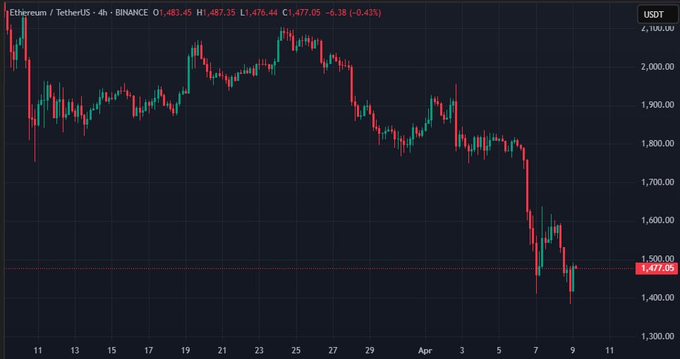 Ранее в CryptoQuant заявили, что активность в Ethereum является основным фактором снижения цены актива. На момент написания монета торгуется вблизи отметки в $1500: