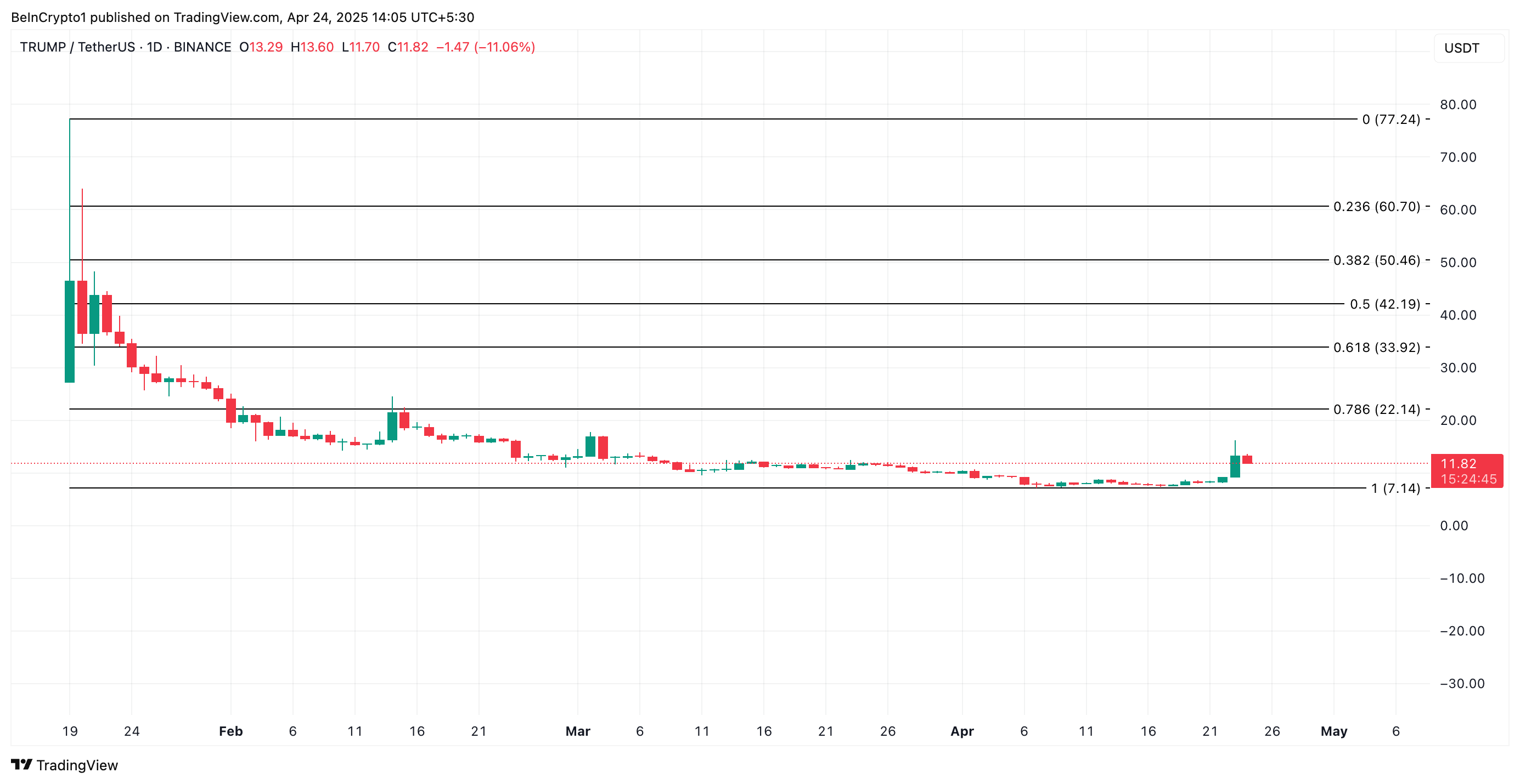 Однако если начнется фиксация прибыли, TRUMP может растерять набранные очки и упасть до $7,14.