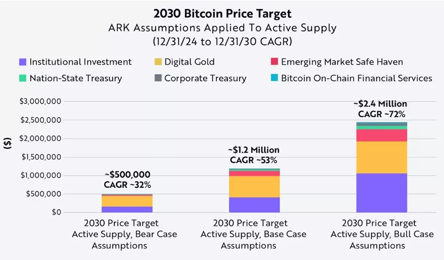 К концу 2030 года цифровое золото может подорожать вплоть до $2,4 млн на фоне роста принятия актива учреждениями и суверенными фондами. Такие расчеты привели в ARK Invest.