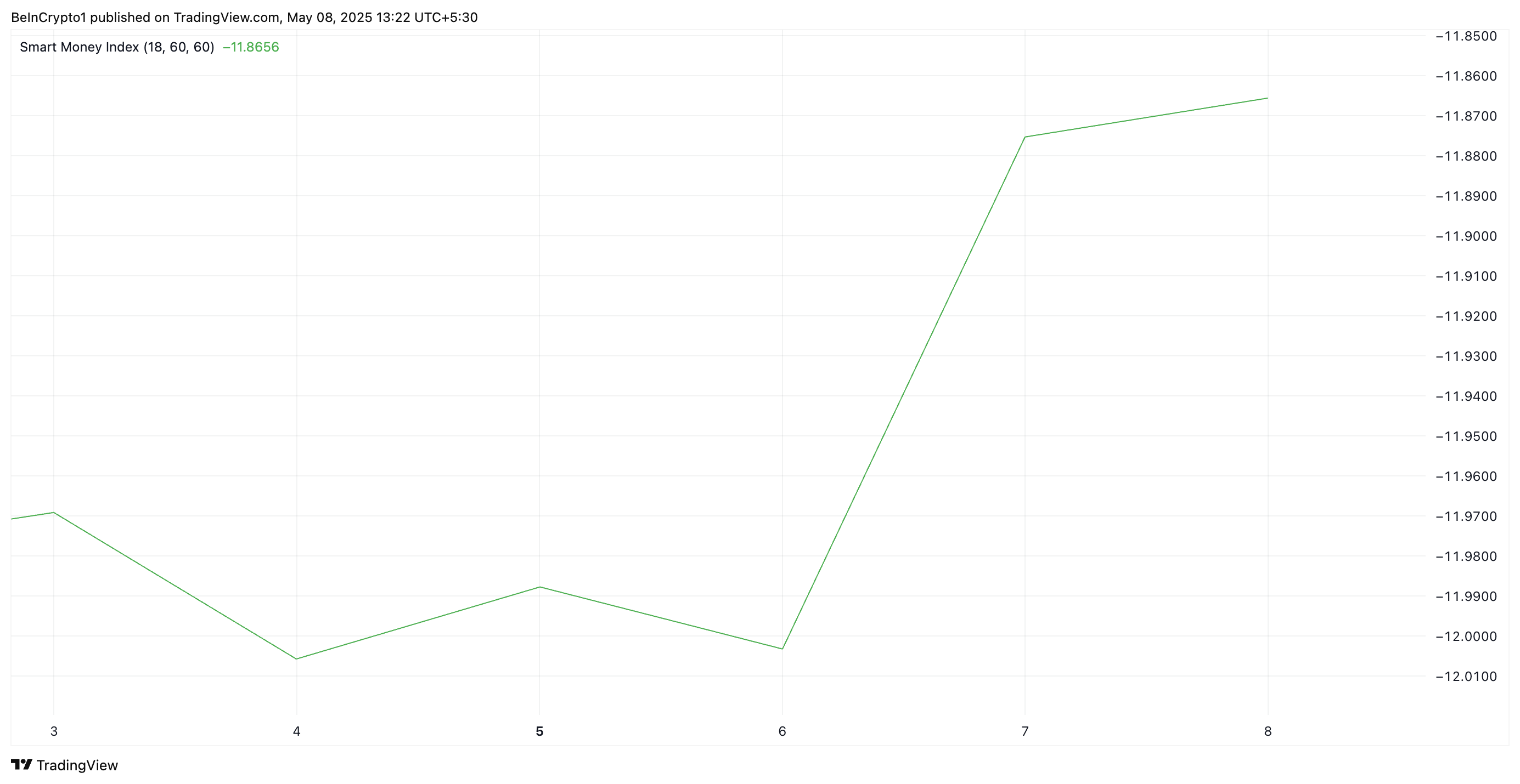 Кроме того, индекс «умных денег» показывают, что институциональное накопление находится на подъеме. На дневном графике индекс SMI EOS достиг пятимесячного максимума на уровне -11,86.
