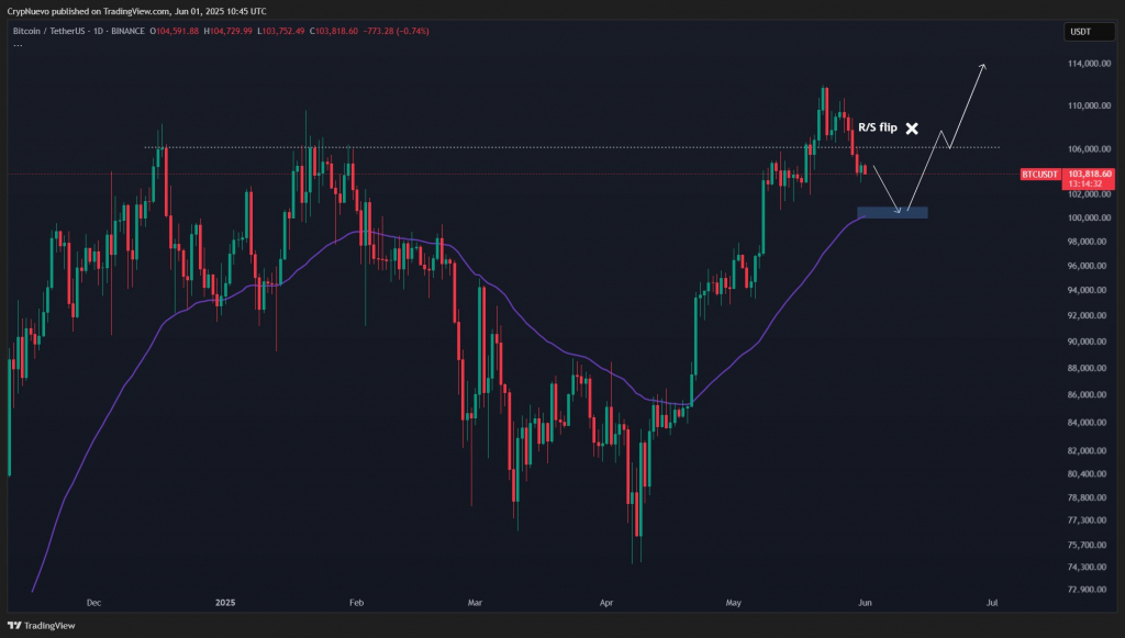 Трейдер CrypNuevo использовал анализ ликвидности для прогноза отскока к $113 000: «Мы в конечном итоге достигнем этого диапазона. Идеально $100 000 → $113 000».