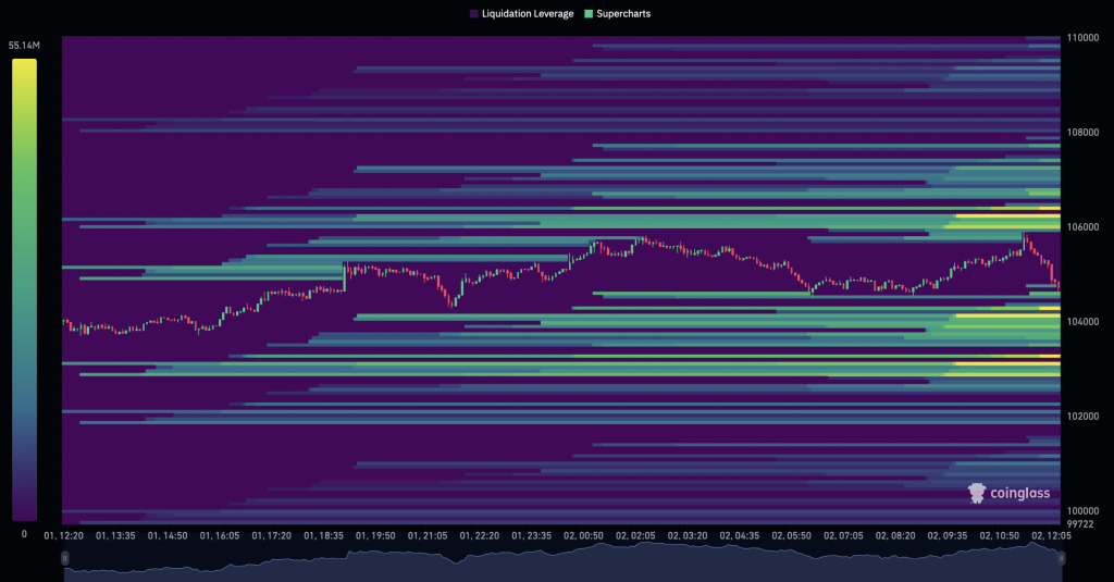 Данные CoinGlass показывают, что основная часть ликвидности ордербука находится выше, а не ниже текущей цены.