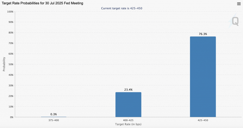 Последние данные инструмента FedWatch Чикагской товарной биржи показывают, что рынки отвергают возможность снижения ставки до сентября.