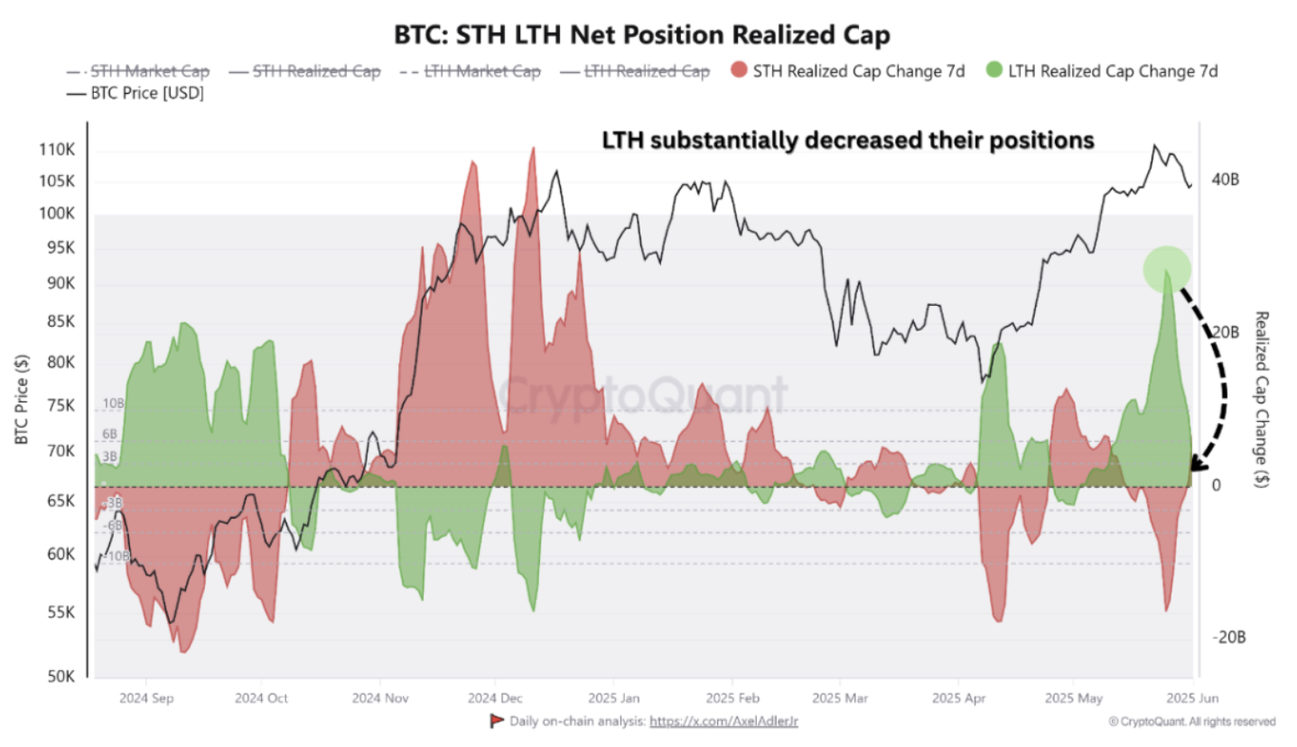 Одновременно у долгосрочных держателей биткоина (LTH) — субъектов, удерживающих монеты шесть месяцев или более — наблюдалось снижение реализованной капитализации к концу месяца. Реализованная капитализация относится к совокупной стоимости всех монет LTH, измеренной по цене их последнего перемещения.