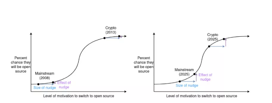 Бутерин видит в копилефте нейтральный способ стимулировать «диффузию прогресса». В отличие от государственных мандатов, таких как единый стандарт зарядки USB-C в ЕС, лицензии не создают преимуществ для отдельных политических или бизнес-интересов.
