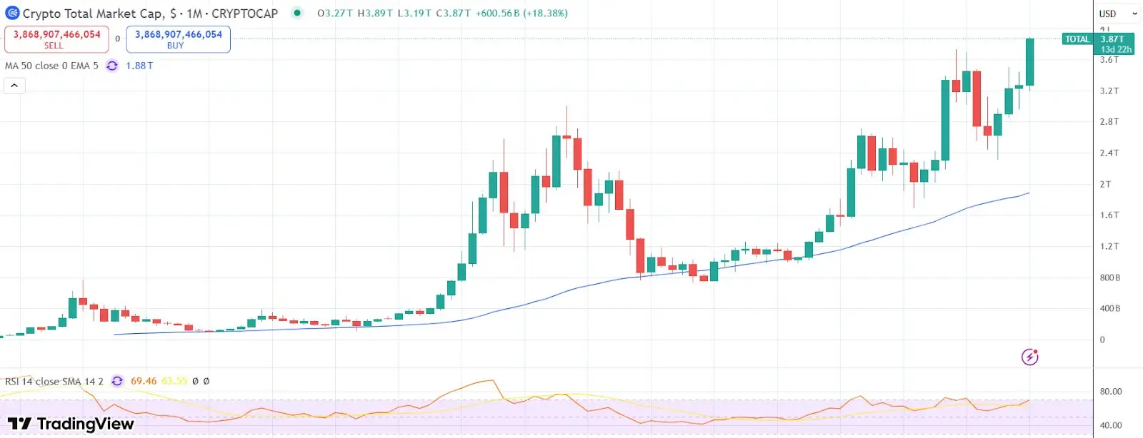 Общая рыночная капитализация достигла пиковых значений. Источник: Tradingview