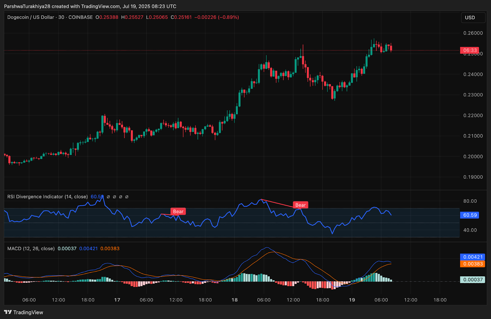 | Цена Dogecoin сегодня | $0.251 |