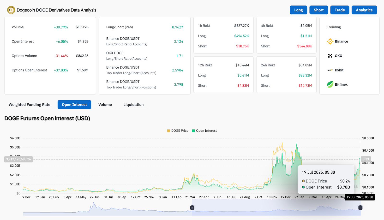 - Открытый интерес вырос на 6,05% до 4,25 млрд долларов, что подтверждает приток капитала.