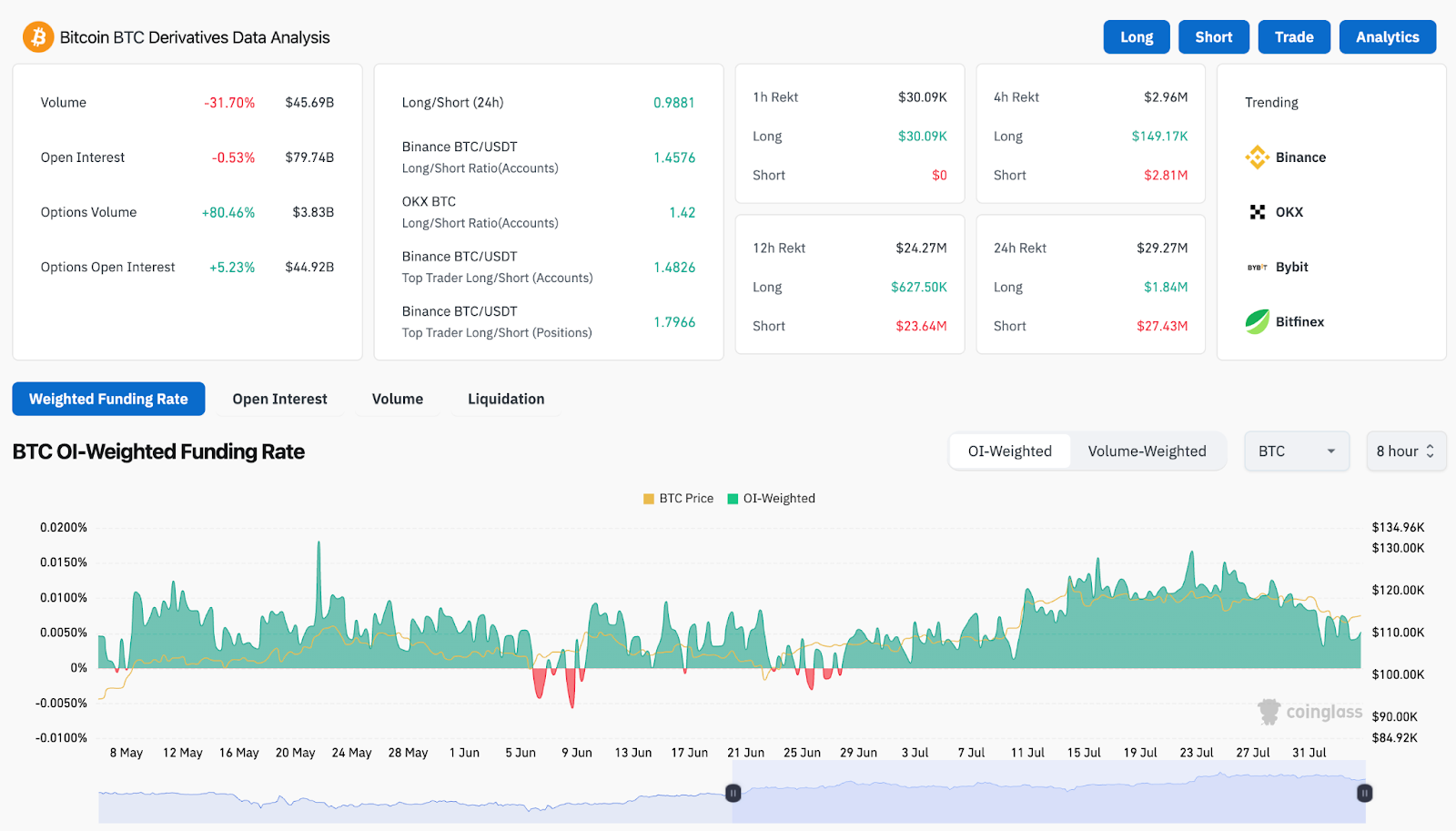 | Объем деривативов | -31.7%, открытый интерес -0.5% |