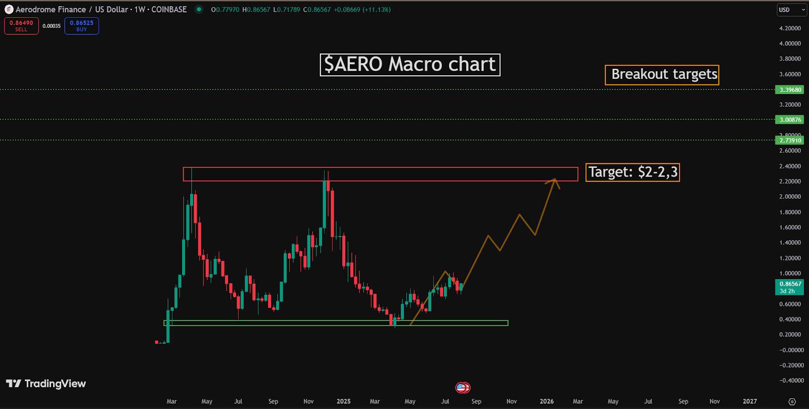 - Аналитики прогнозируют, что в краткосрочной перспективе AERO может достичь нового исторического максимума в $2,30, а долгосрочная цель — $3,30 к началу 2026 года.