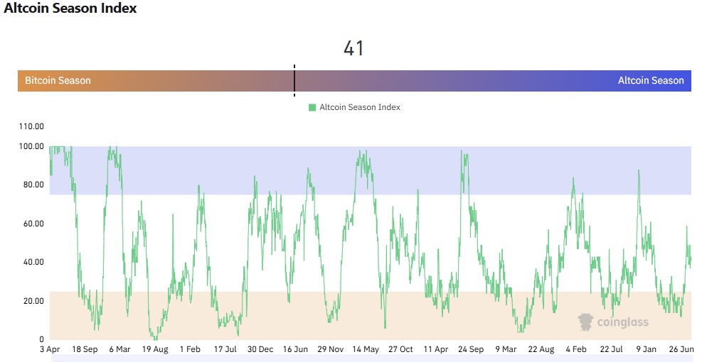 Однако, хотя индекс сезона альткоинов подскочил до 41, он все еще далек от уровня 75+, который сигнализирует о настоящем общерыночном ралли альткоинов.