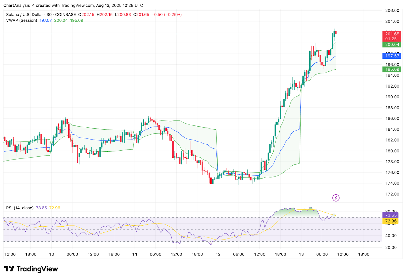 | Цена Соланы сегодня | $201.15 |