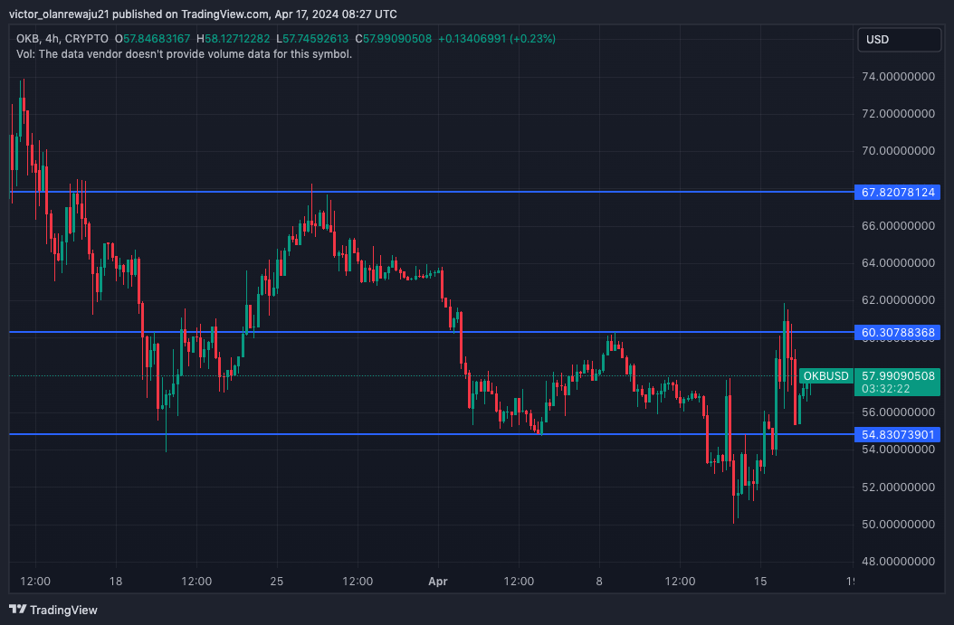 Зоны сопротивления и поддержки важны для того, чтобы определить, может ли цена криптовалюты вырасти или нет. Для OKB была надежная поддержка на уровне $54,83, что может предотвратить дальнейшее падение цены.