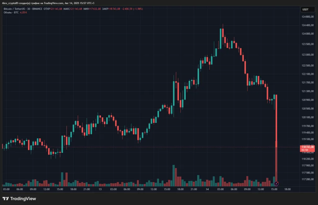 На момент написания на рынке наблюдается коррекция — биткоин уже торгуется в районе $118 720.