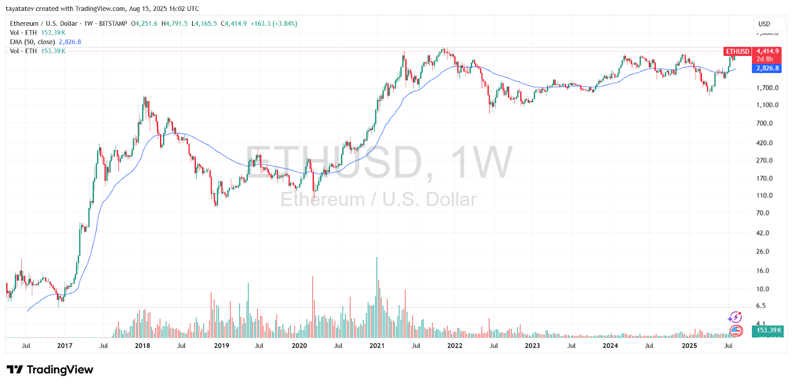 Ethereum приближается к историческому максимуму на фоне бурно растущего рынка