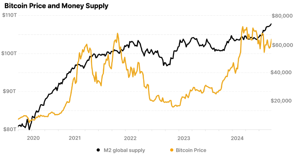 Мартовское исследование 21Shares показало корреляцию между ценой биткоина и глобальной ликвидностью на уровне 94%. Этот показатель выше, чем у индекса S&P 500 и золота.