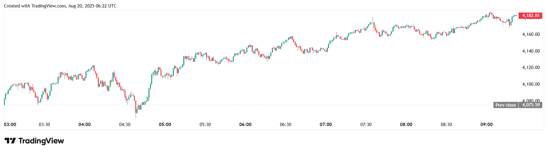 Курс Ethereum, в свою очередь, восстановился до $4182. На недельном чарте просадка составляет уже около 9%: