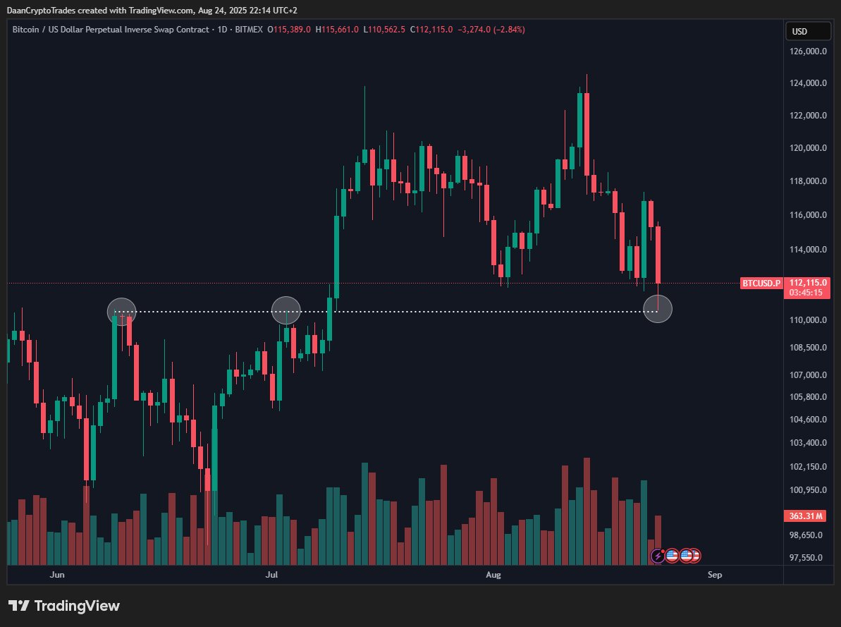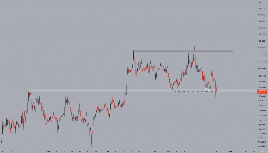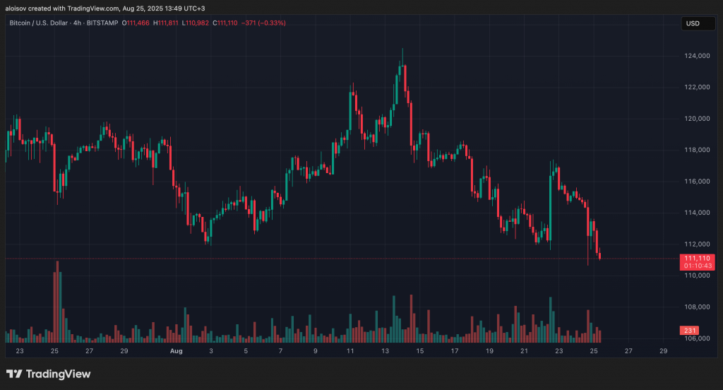 Трейдеры заговорили о завершении бычьего ралли биткоина после того, как первая криптовалюта опустилась до $110 700 — минимального значения с 10 июля. Воскресная волатильность спровоцировала ликвидацию длинных позиций на $640 млн, а аналитики теперь рассматривают сценарии ретеста отметки $100 000.