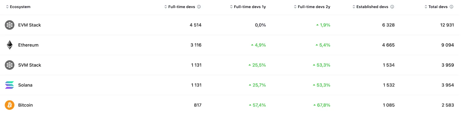 При этом данные Electric Capital рисуют иную картину. В сети флагмана крипторынка работают 2583 разработчика, в то время как на платформе Ethereum — 9094.
