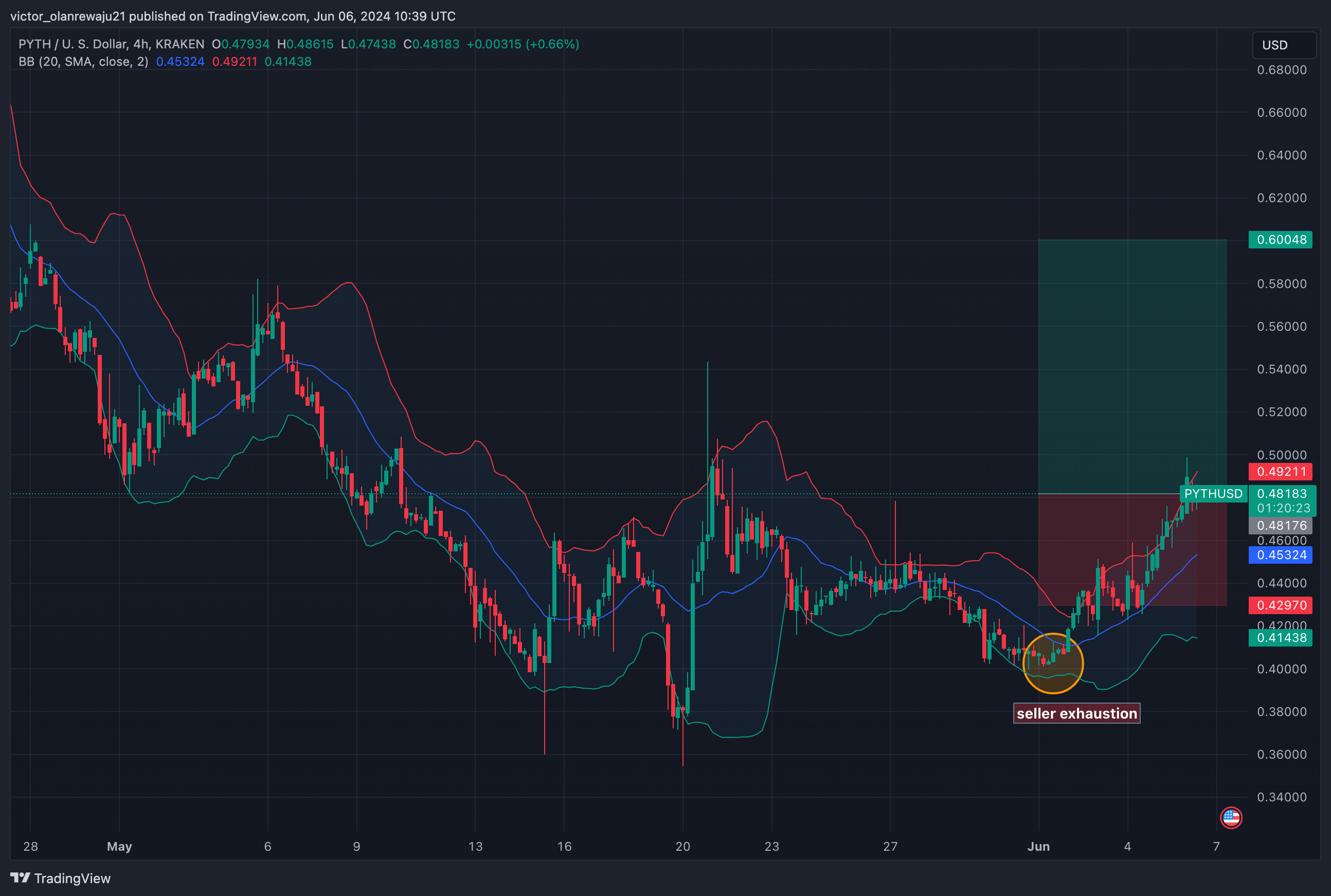 Рыночная структура PYTH на 4-часовом рынке указывала на то, что токен был омрачен давлением со стороны продавцов. Но 1 июня, казалось, продавцы выдохлись, и быки извлекли из этого выгоду, помогая цене PYTH пробиться.