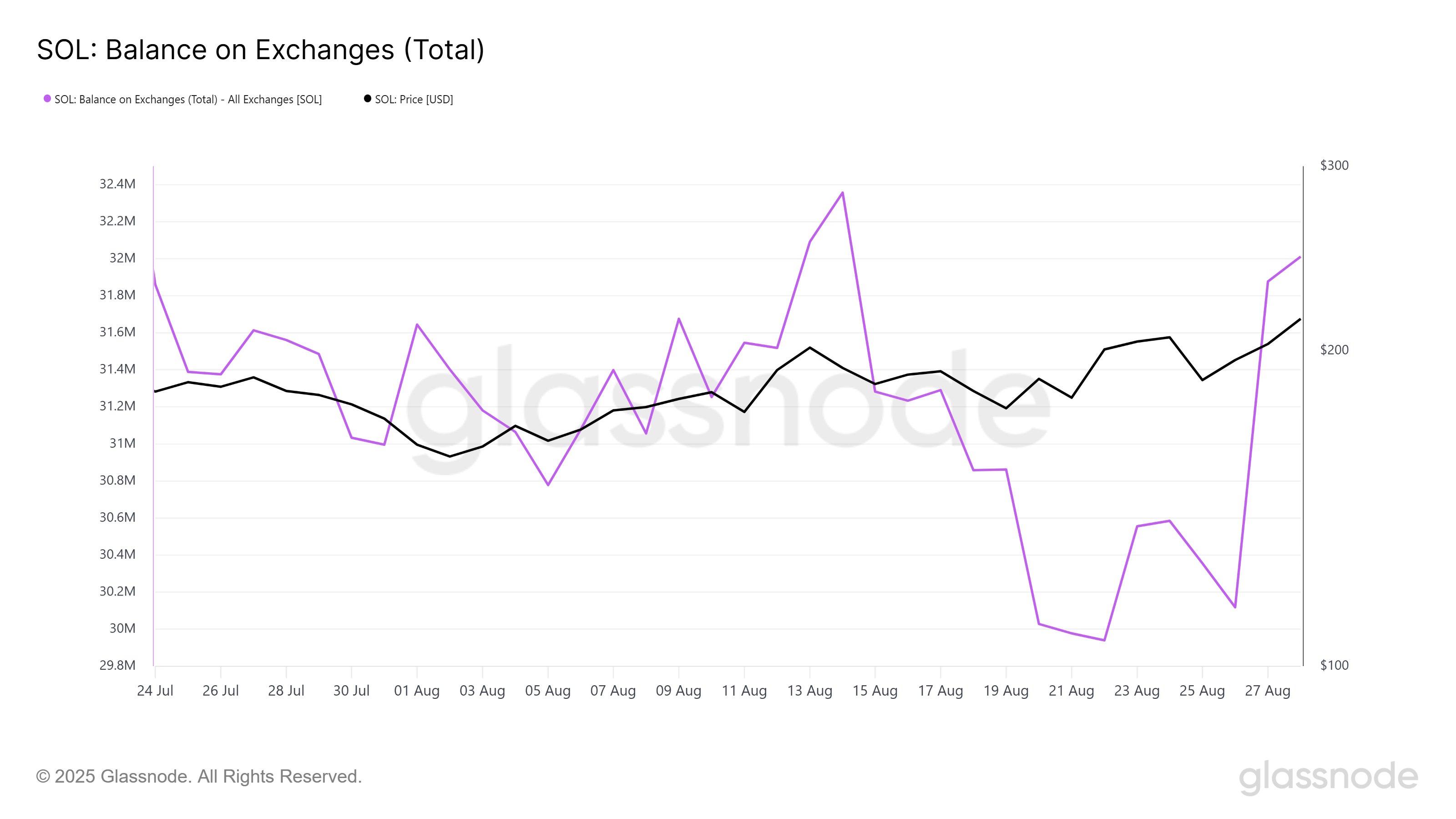 Баланс токена проекта Solana на биржах резко увеличился за последние три дня. Более 2 млн SOL стоимостью свыше $432 млн поступило на биржи. Это показывает, что инвесторы хотят воспользоваться ростом цены для фиксации прибыли и не стремятся увеличивать риски в условиях волатильности. Такое поведение часто наблюдается во время стремительных подъемов, когда инвесторы спешат зафиксировать прибыль до возможной коррекции.