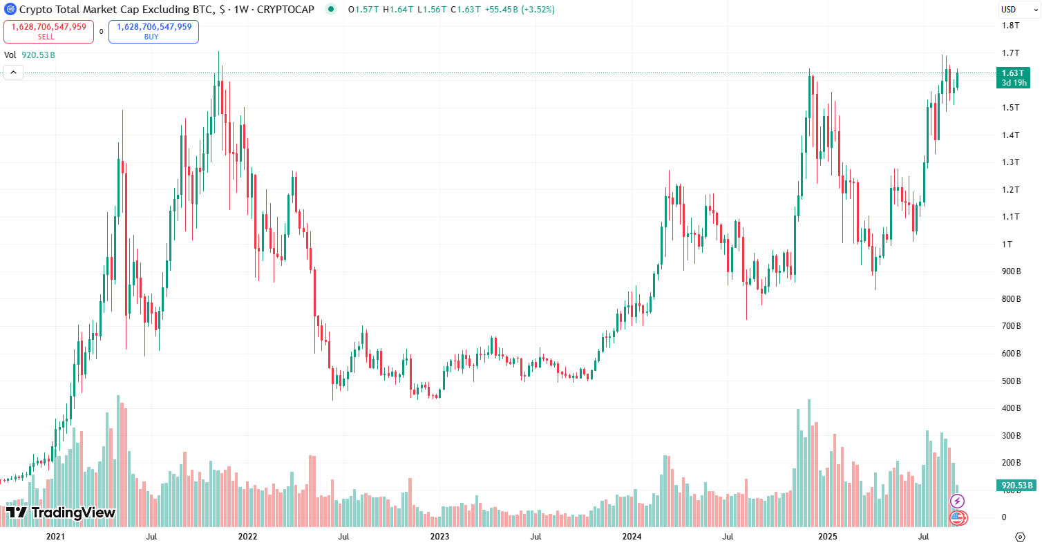 Капитализация рынка альткоинов приближается к историческим максимумам. Источник: TradingView