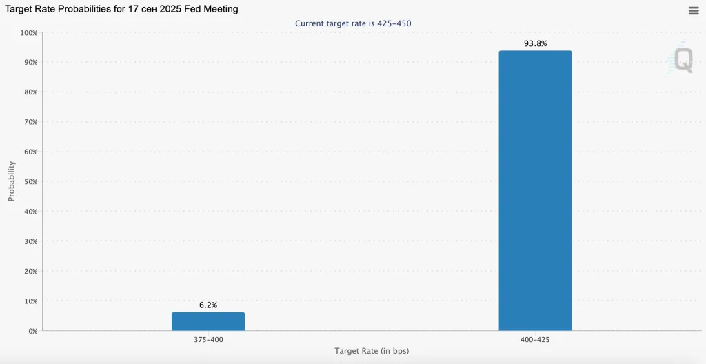 Первый драйвер альтсезона — потенциальное снижение ключевой ставки ФРС 17 сентября. 100% участников рынка ожидают смягчения денежно-кредитной политики, что добавит ликвидность в финансовую систему и простимулирует спрос на высокорисковые активы.