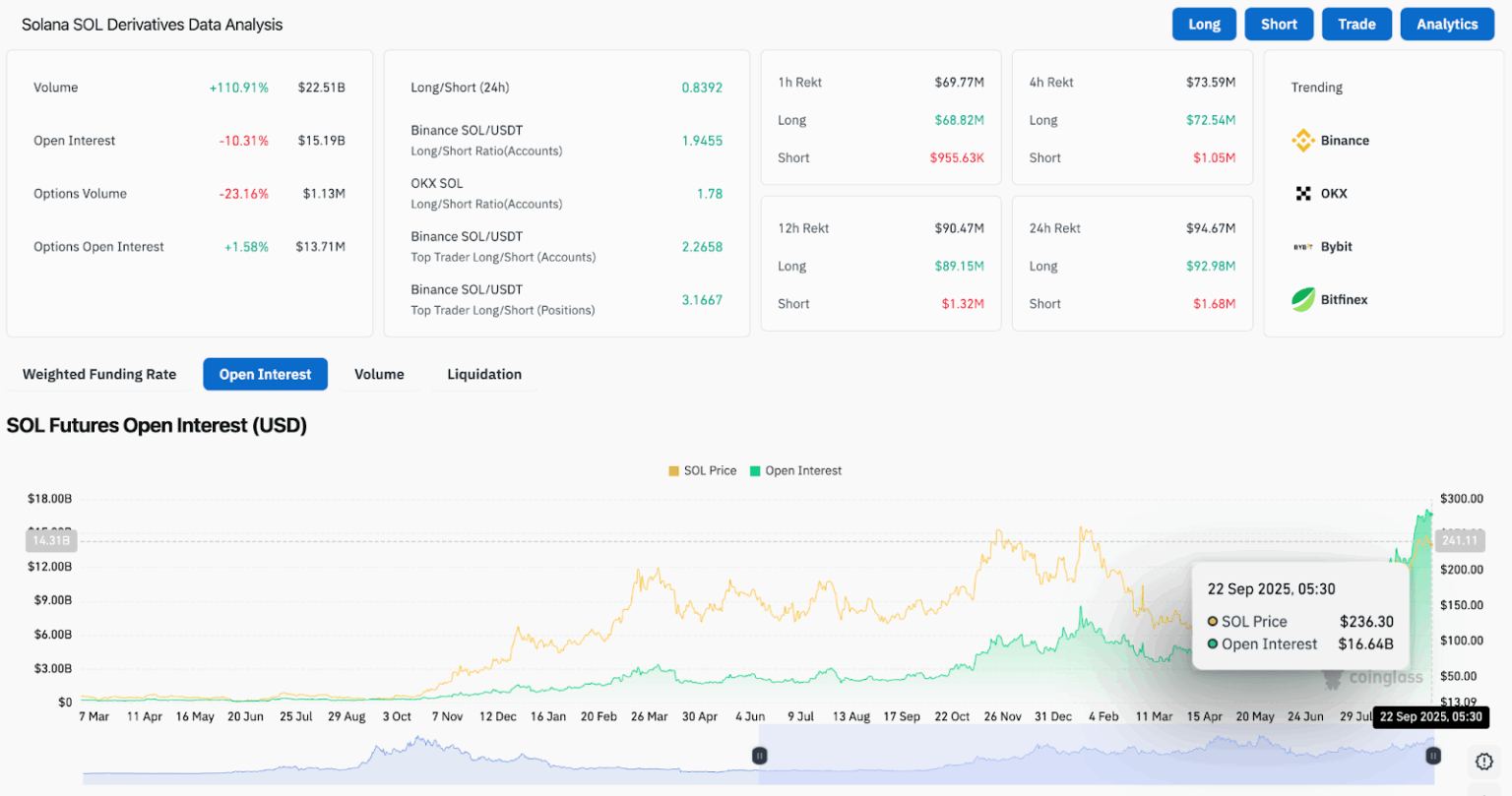 - Открытый интерес к акциям Solana снизился на 10% до $15,19 млрд, поскольку деривативы сбросили цены, а оптимизм и повышение рейтингов ETF обеспечивают долгосрочную поддержку.