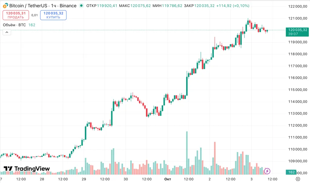 На момент написания биткоин торгуется около $120 000, показав рост на 1,3% за последние сутки.