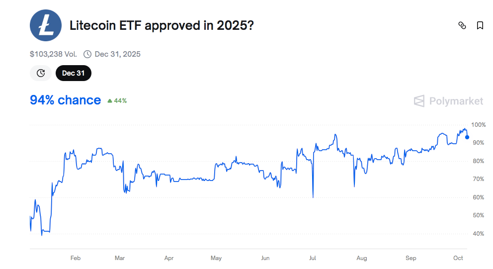 По данным Polymarket, вероятность одобрения ETF составляет 94%, но