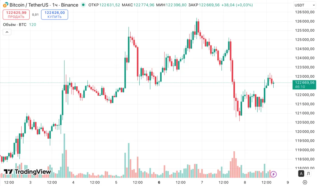 За последние сутки первая криптовалюта скорректировалась на 2%. На момент написания цифровое золото торгуется около $122 600.