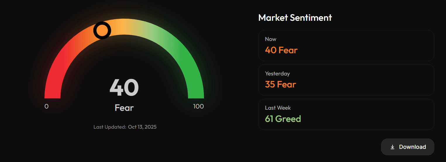 Индекс страха и жадности, который является индикатором настроений инвесторов на крипторынке, вырос на пять пунктов за последние 24 часа.