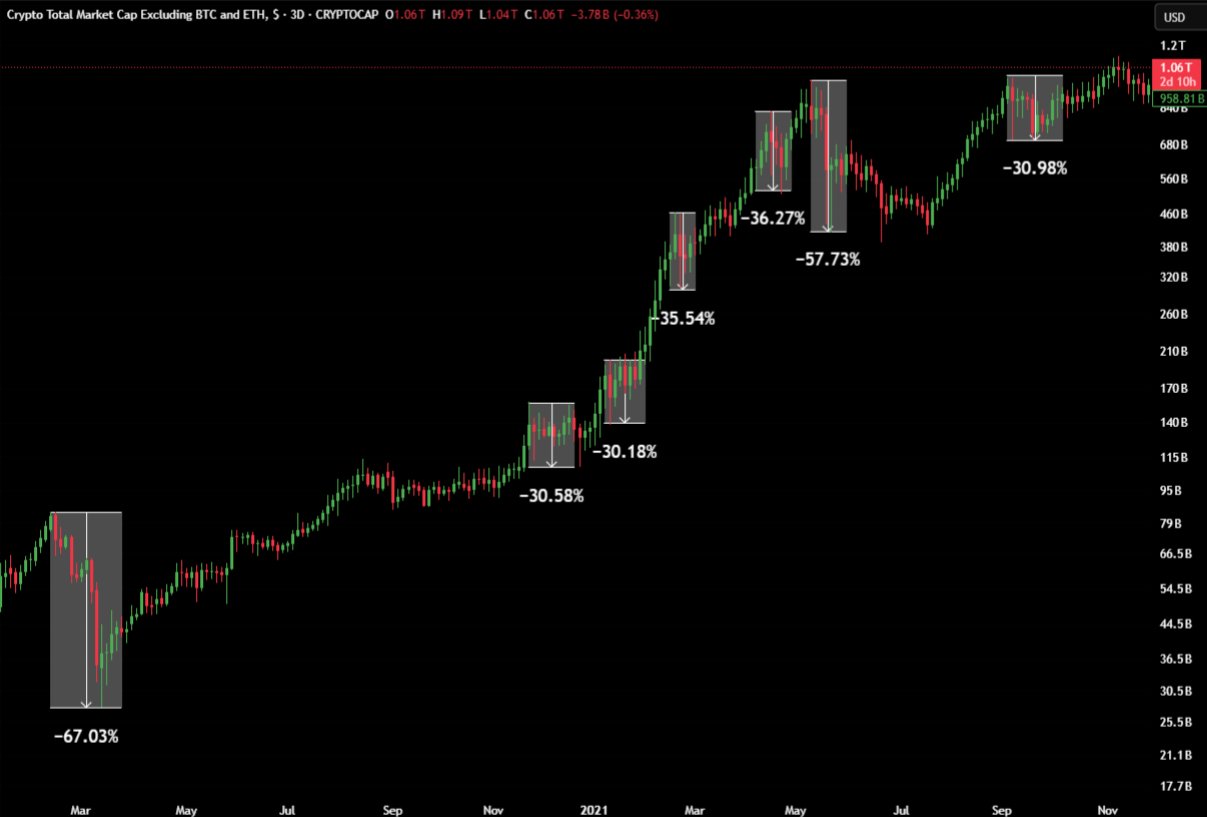 В марте 2020 года рынки обвалились почти на 70% из-за пандемии — события типа «черный лебедь», а в мае 2021 года просадка составила более 50%. За время последнего бычьего рыночного цикла произошло как минимум пять просадок альткоинов на 30-40%.