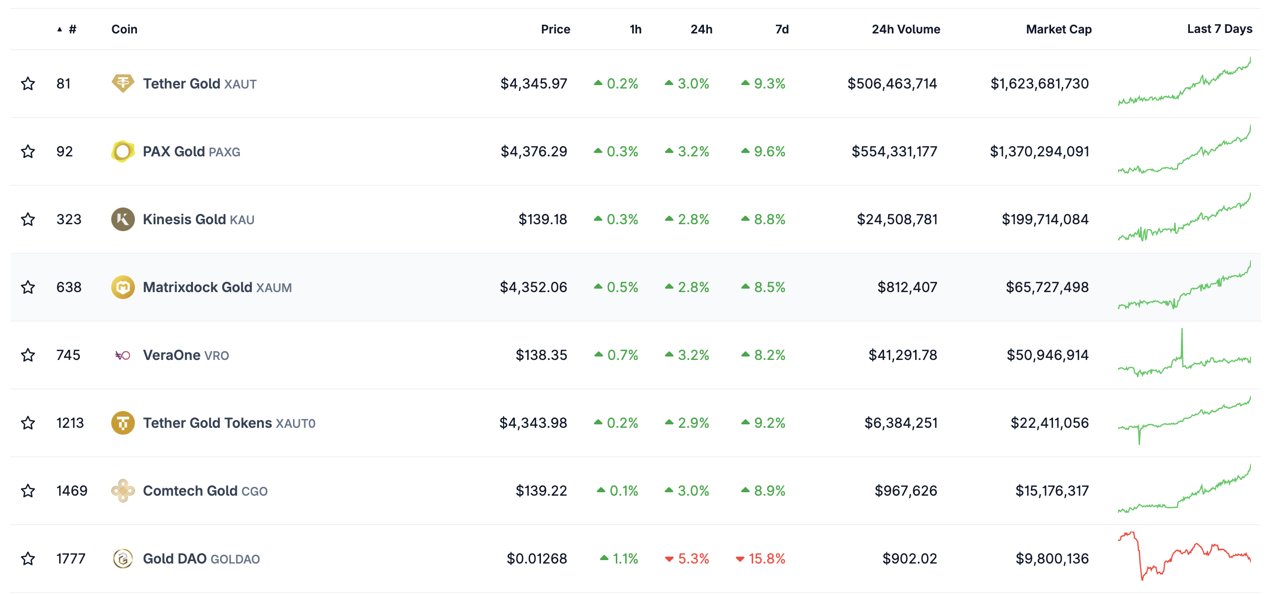 PAX Gold (PAXG) торгуется около $4 413. Токен вырос более чем на 65% за год, в то время как Tether Gold (XAUT), с ценой около $4 360, прибавил 63%. Их совокупная рыночная капитализация сейчас приближается к $3 млрд, показывая, как физические средства сохранения стоимости переходят на блокчейны.