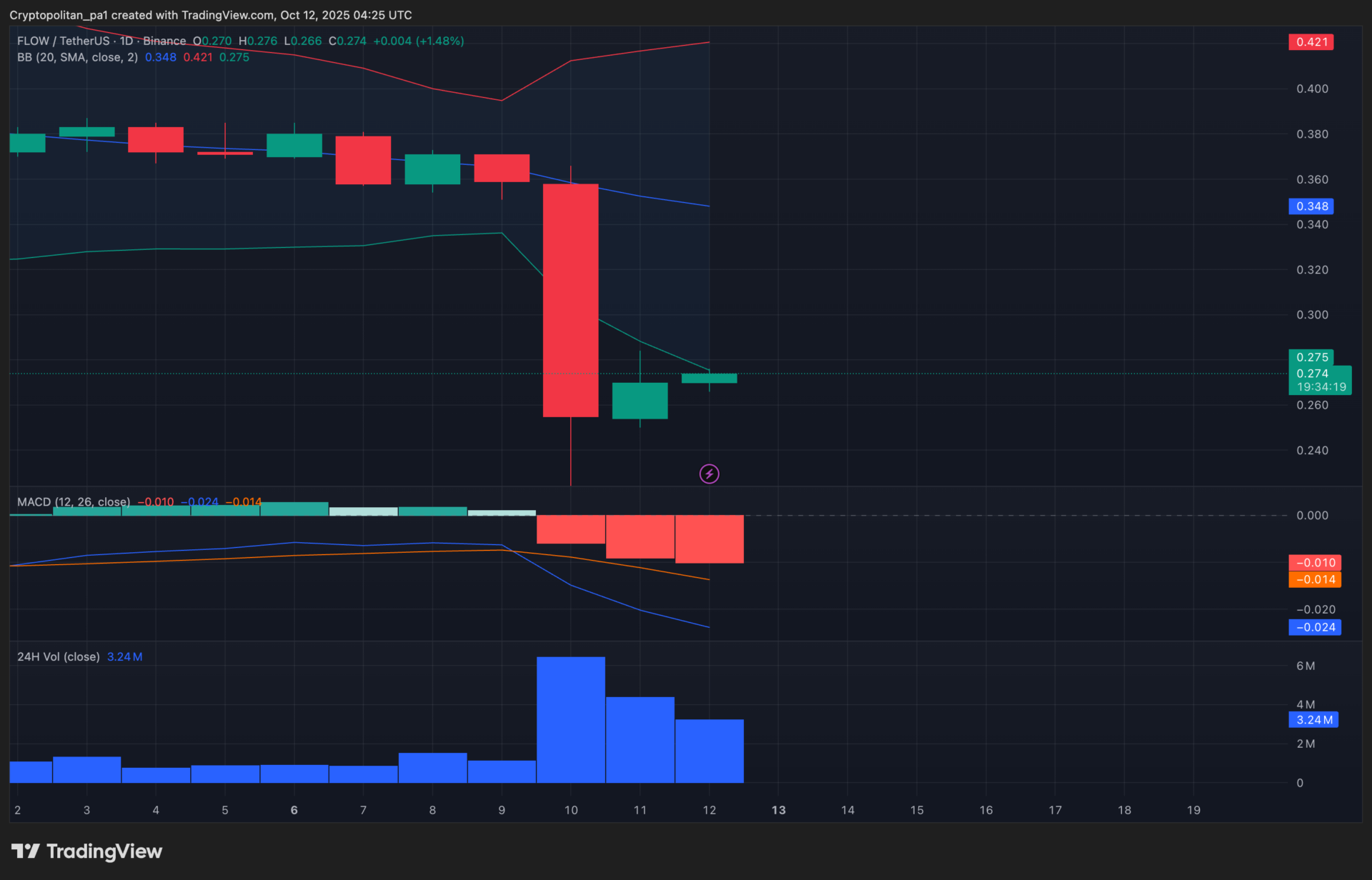 На дневном графике индекс относительной силы (RSI) XRP формирует бычью дивергенцию на фоне снижения цен. Кроме того, цена XRP колеблется в нижней части дневных полос Боллинджера, что указывает на отскок после перепроданности.