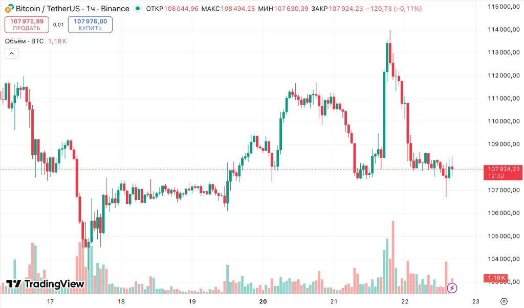На момент написания первая криптовалюта торгуется около $108 100. За последние сутки актив подешевел на 0,4%.