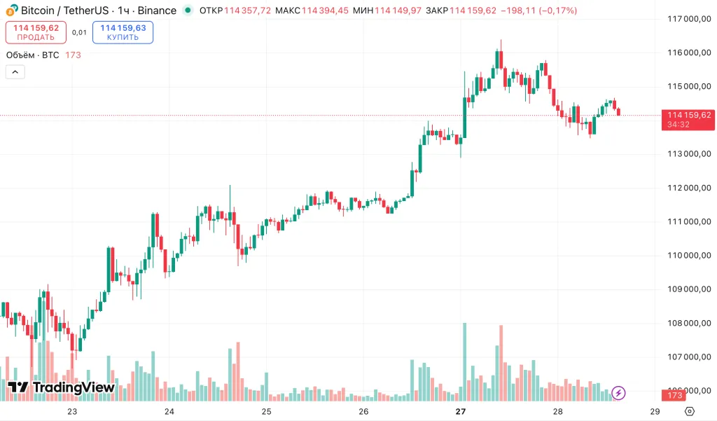Криптоинвестор под псевдонимом Rekt Capital подчеркнул, что быкам необходимо превратить недельное закрытие на $114 500 в поддержку через ретест для подтверждения прорыва.