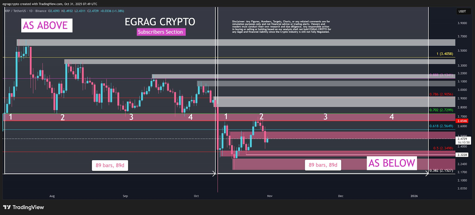 Цена XRP консолидируется в узком диапазоне по мере приближения рынка к ноябрю. Путь токена к прорыву уровня $3,00 зависит от его способности преодолеть сегодня критически важную зону сопротивления $2,70–$2,77. Этот анализ от популярного аналитика Egrag Crypto фокусируется на текущей технической ситуации.