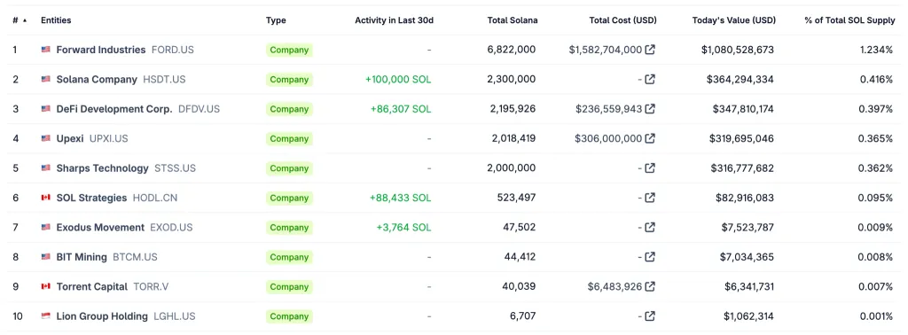 Еще 10 компаний включили в свои резервы Solana. Под их управлением — 15 998 SOL на сумму $2,5 млрд (2,8% от общего предложения монеты).