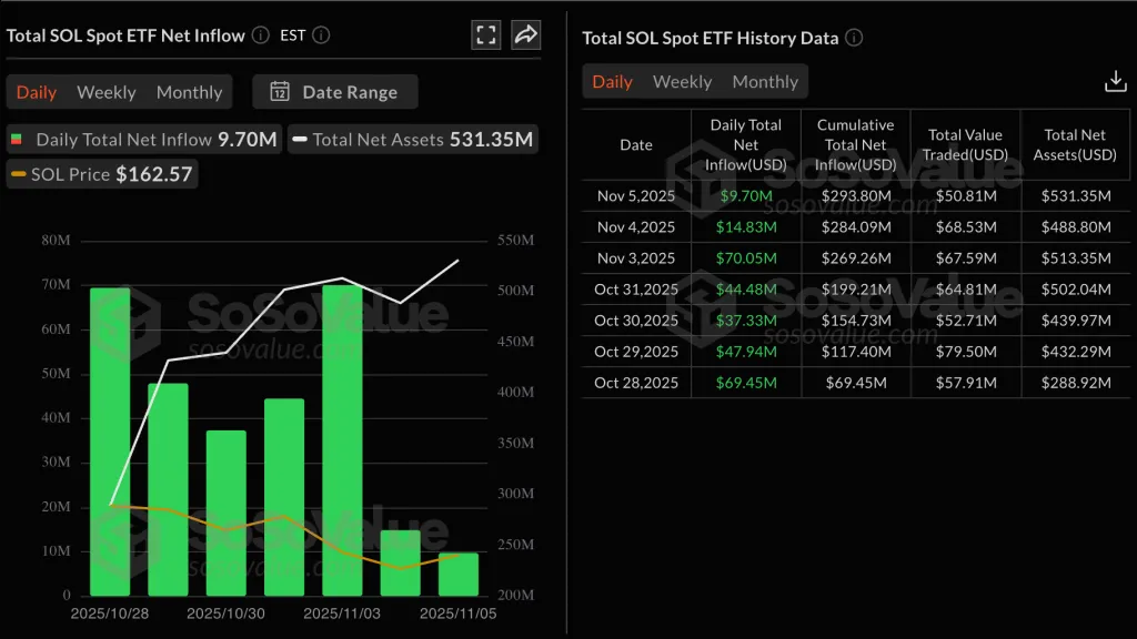 Биржевой фонд компании на базе Solana уже привлек $282 млн. Положительные притоки средств наблюдаются седьмую торговую сессию подряд.