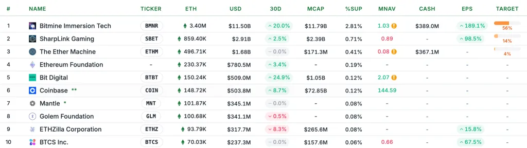 70 фирм добавили на свои балансы Ethereum. Всего они аккумулировали 6,14 млн ETH стоимостью $20,7 млрд (5% от общей эмиссии криптовалюты).